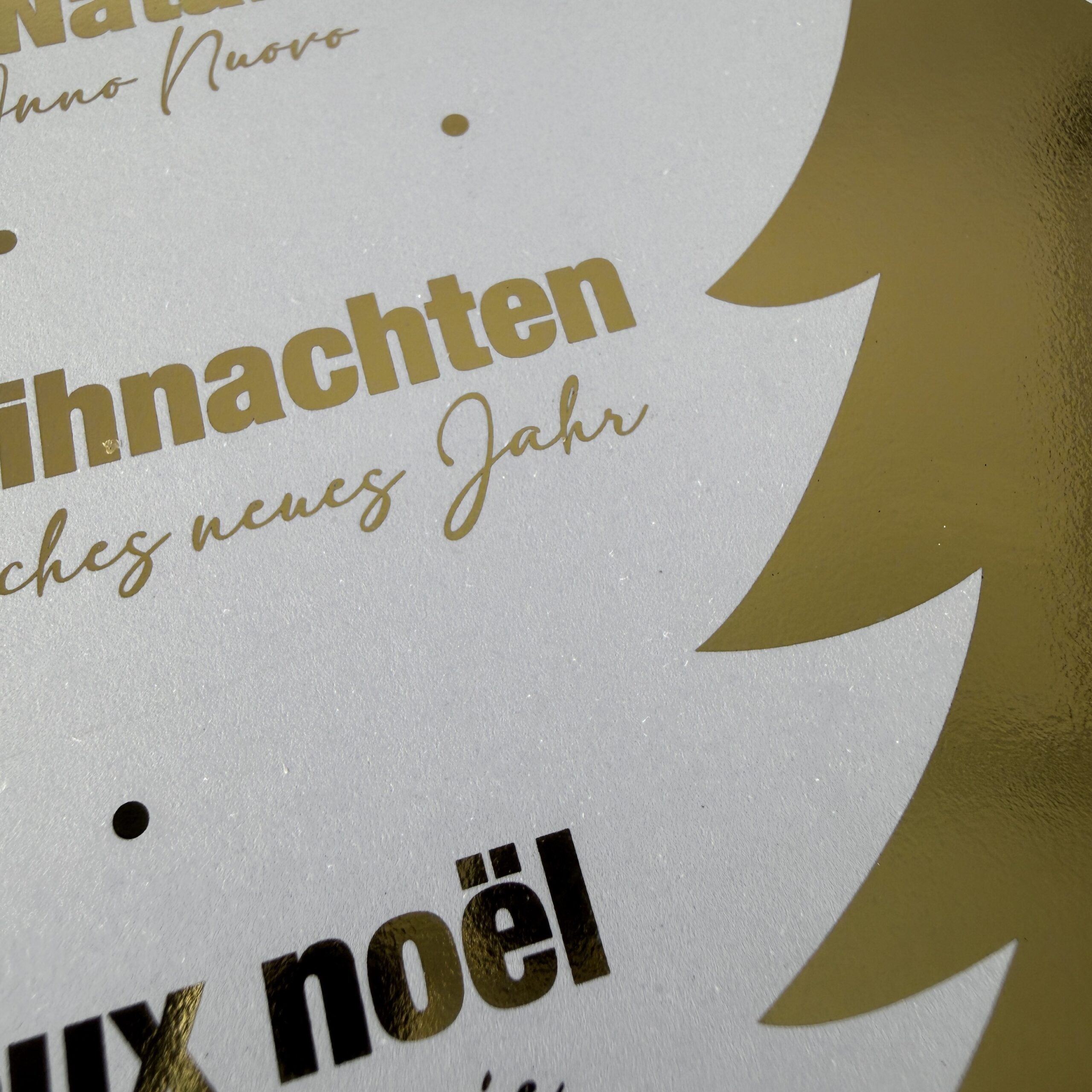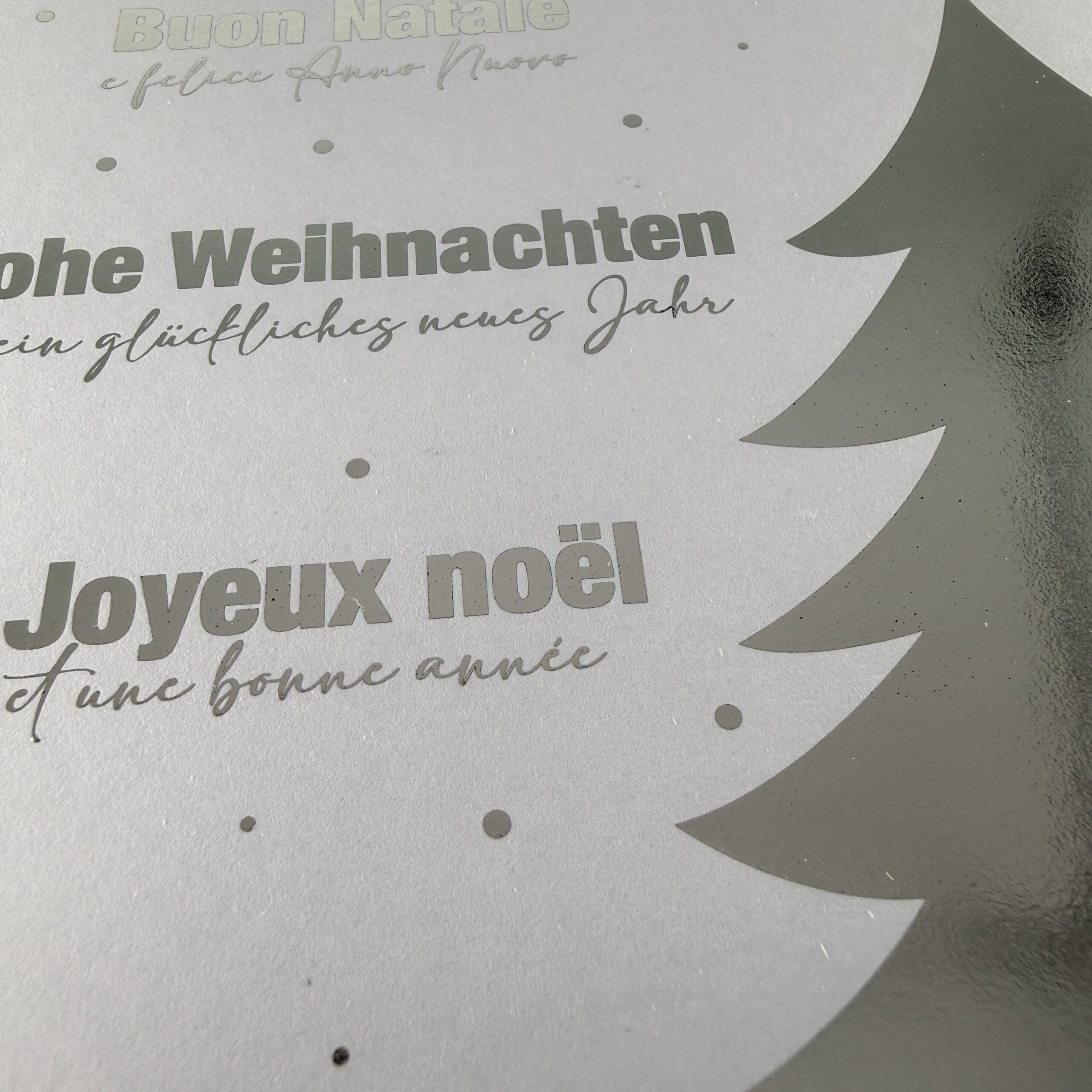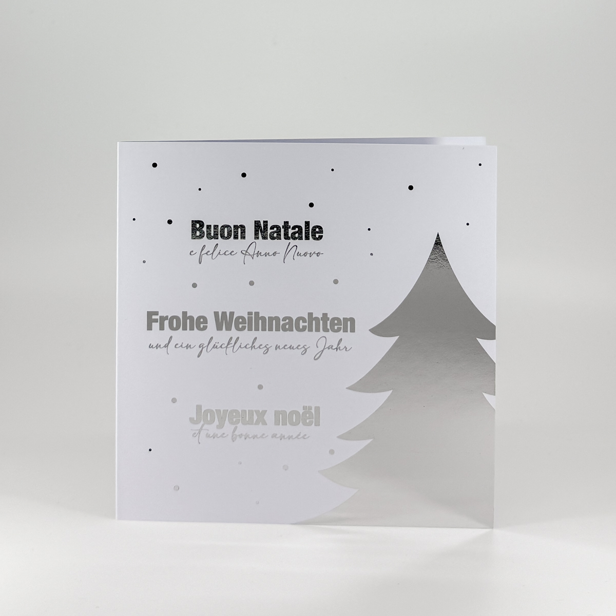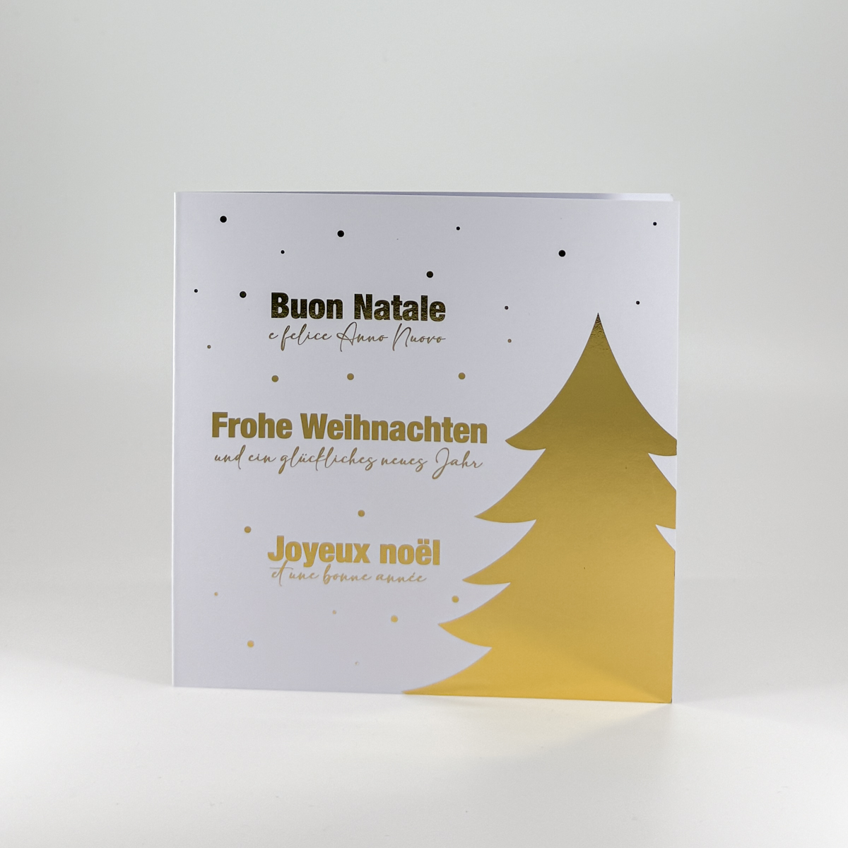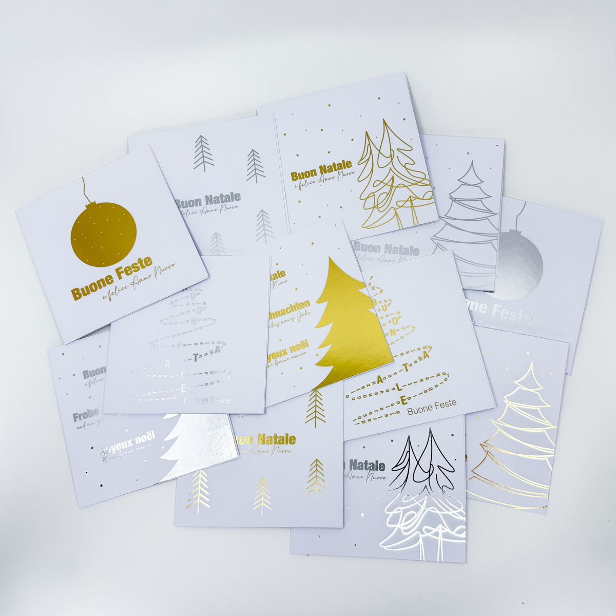 Collezione di biglietti di Natale impreziosita da laminazione a scelta tra oro e argento.
