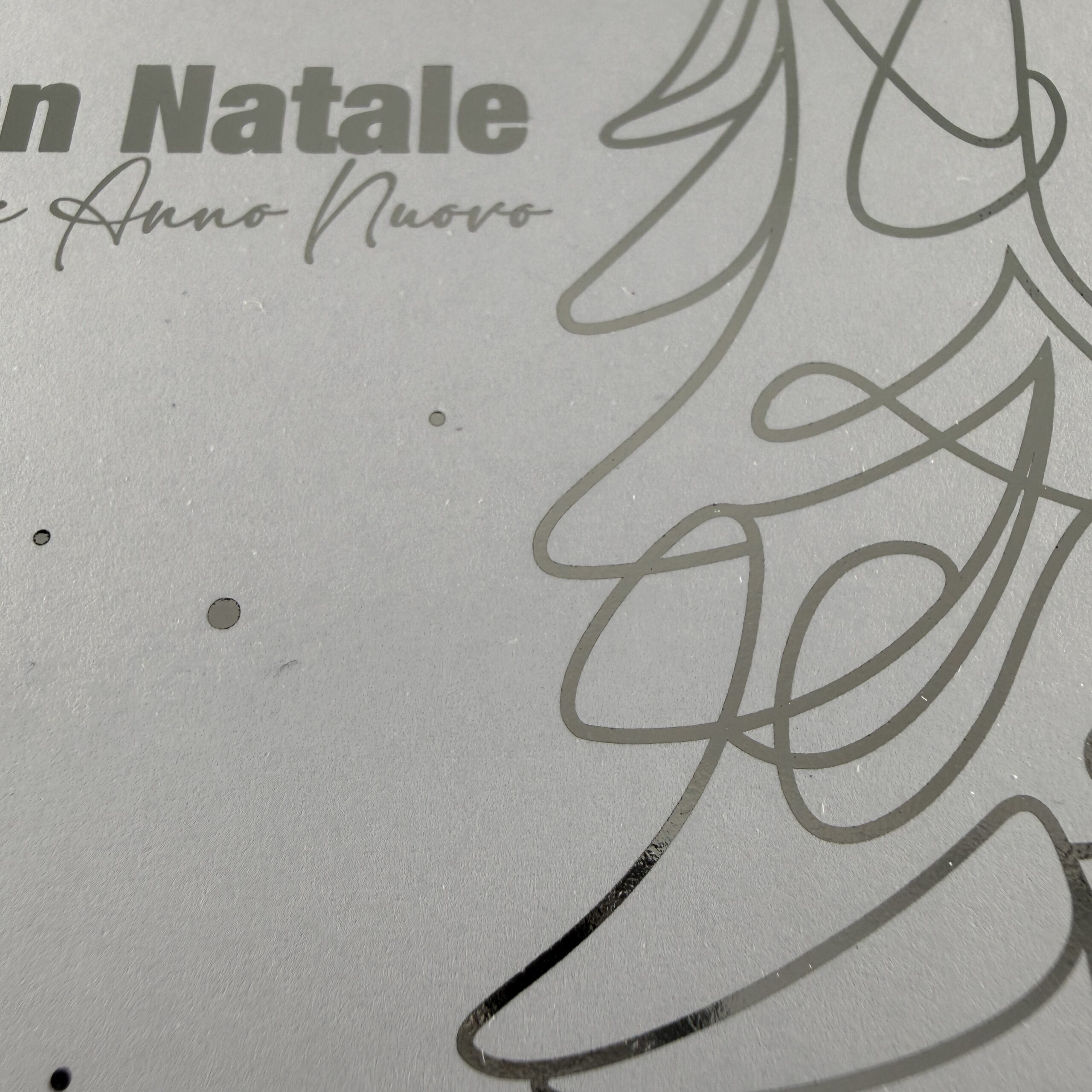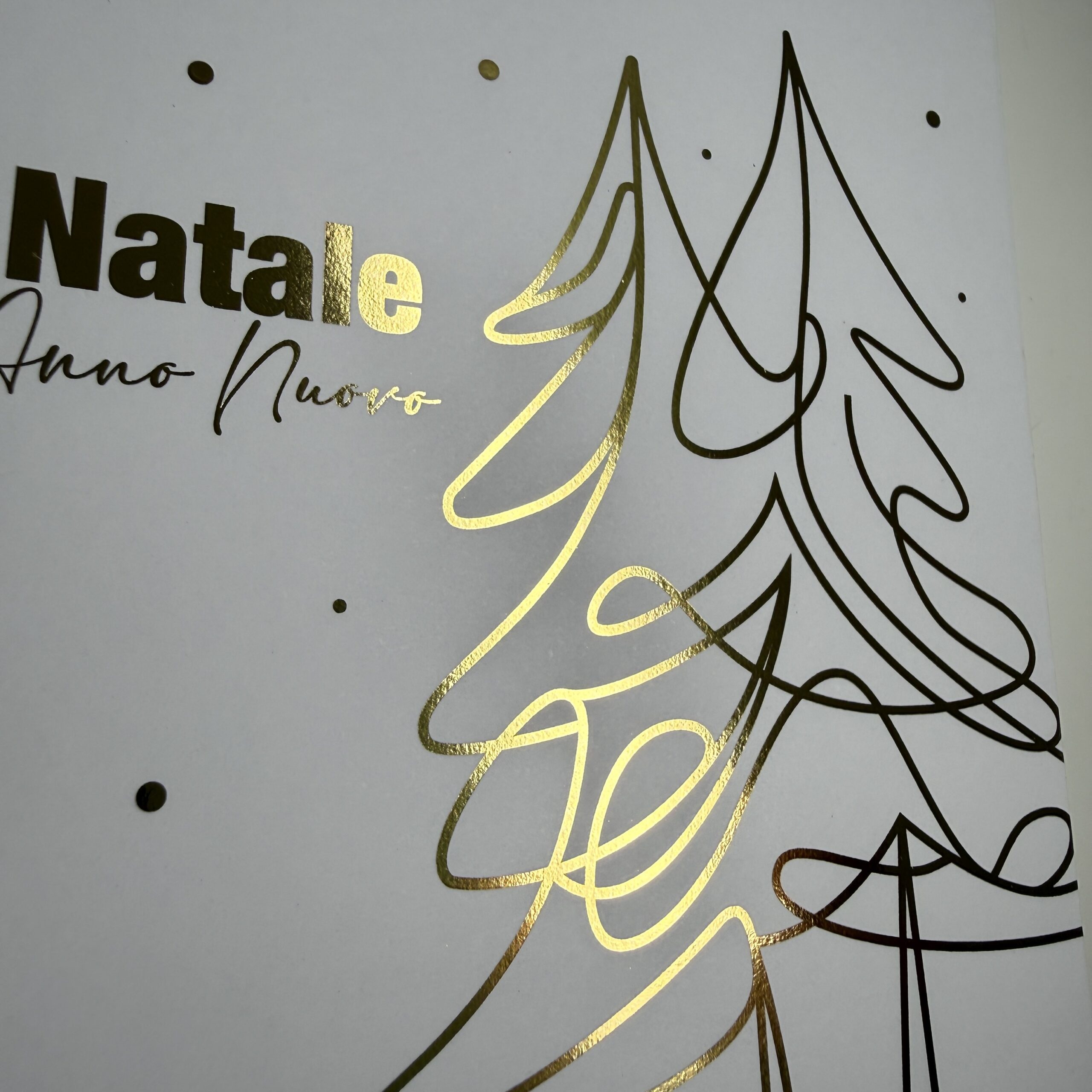 Collezione di biglietti di Natale impreziosita da laminazione a scelta tra oro e argento.