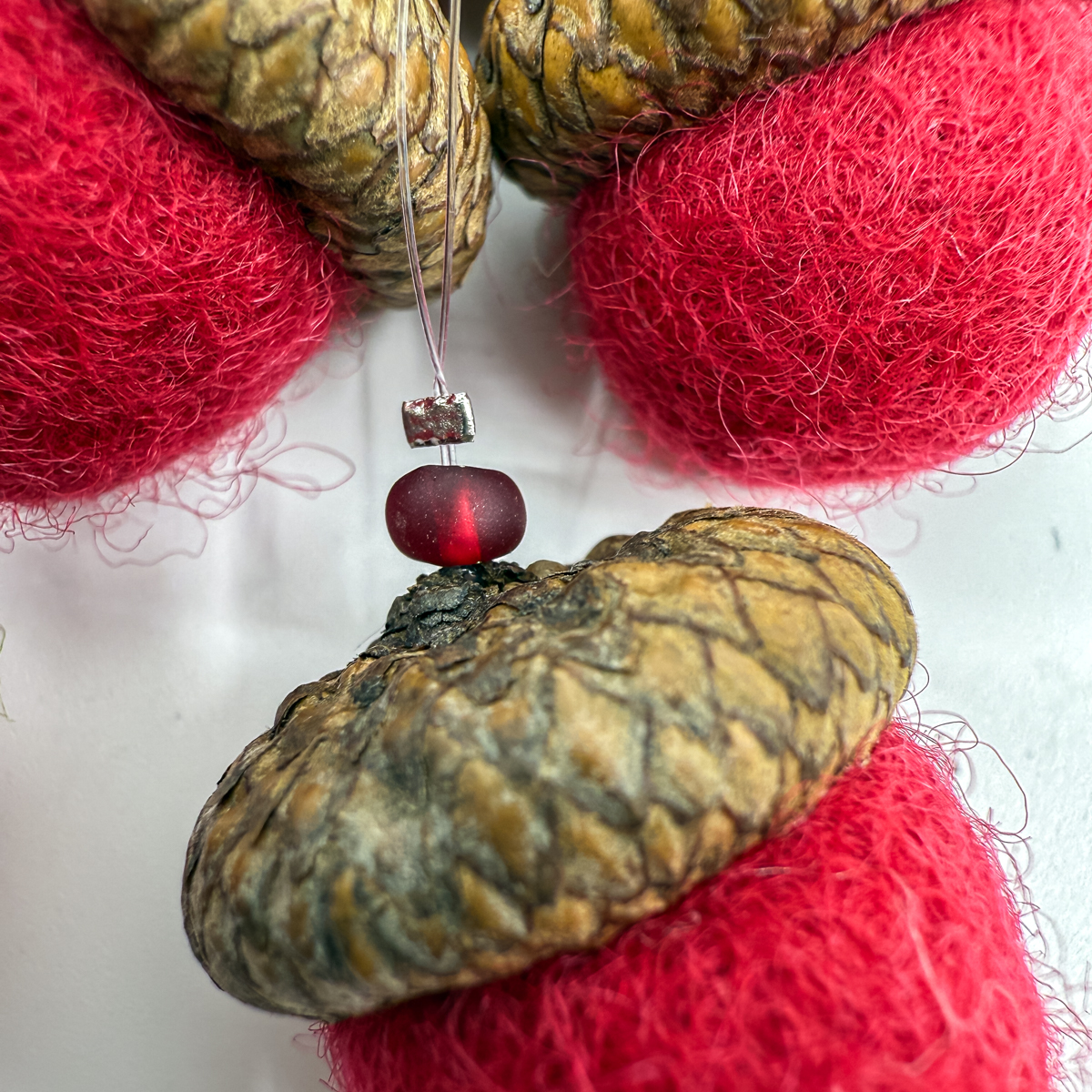 Dimensioni: ghianda circa 2×3 cm – lunghezza filo 8 cm.
