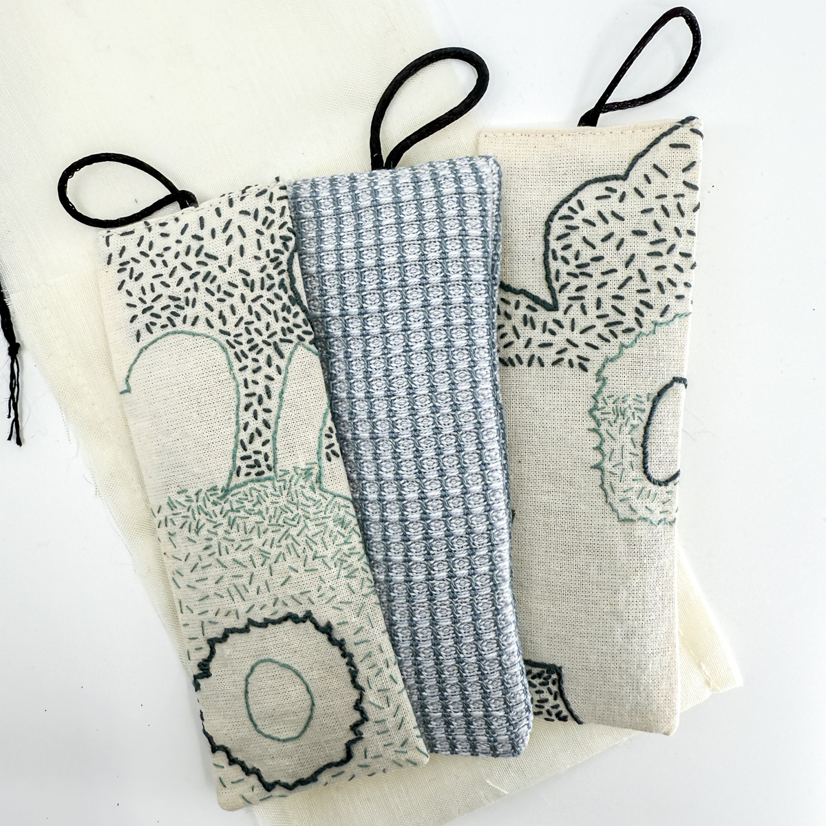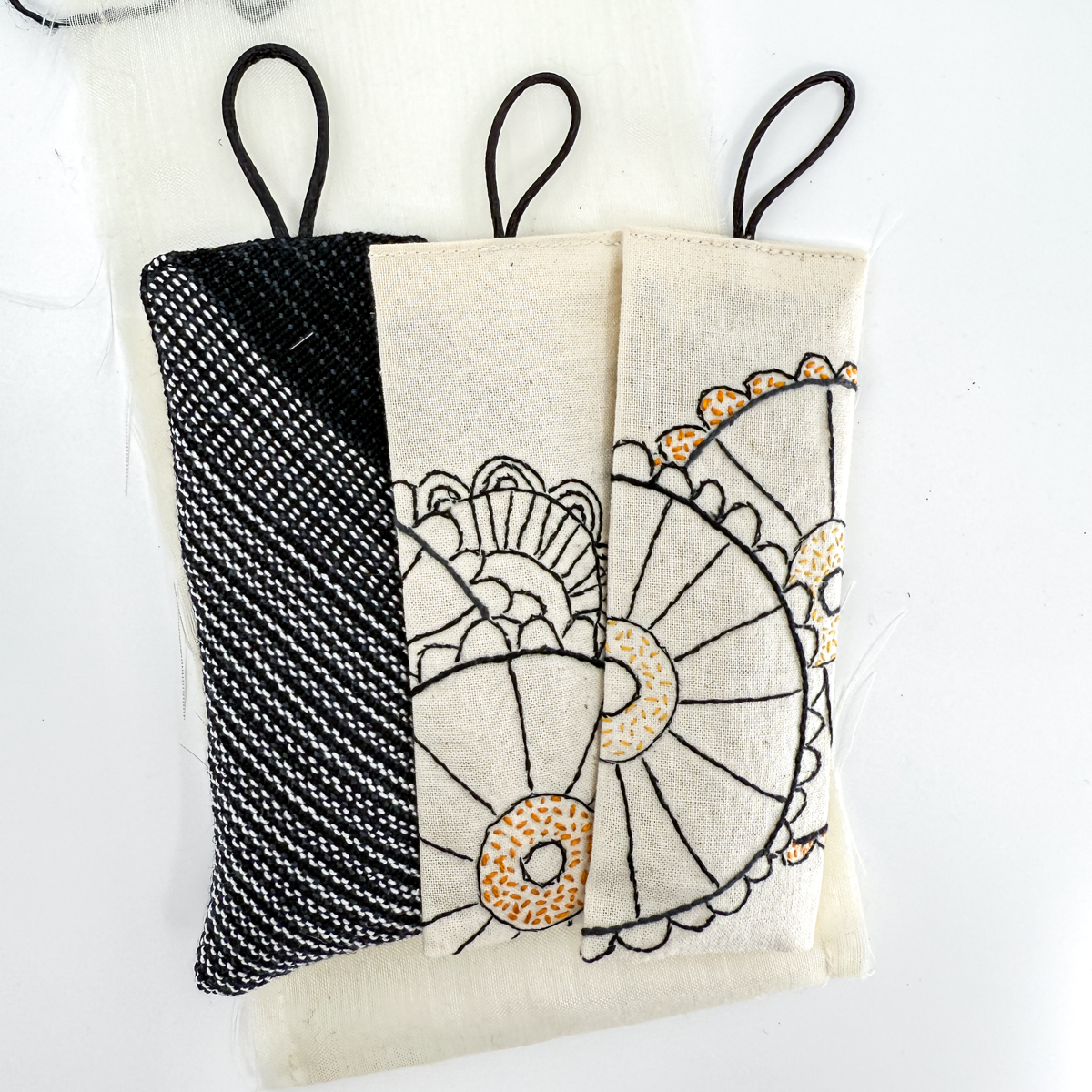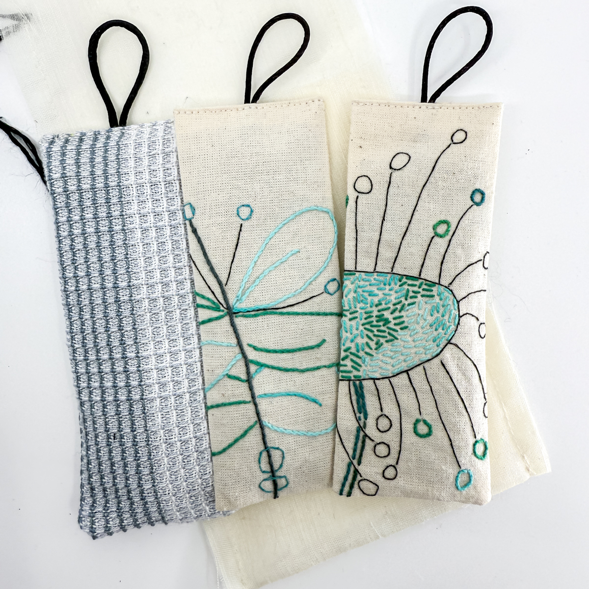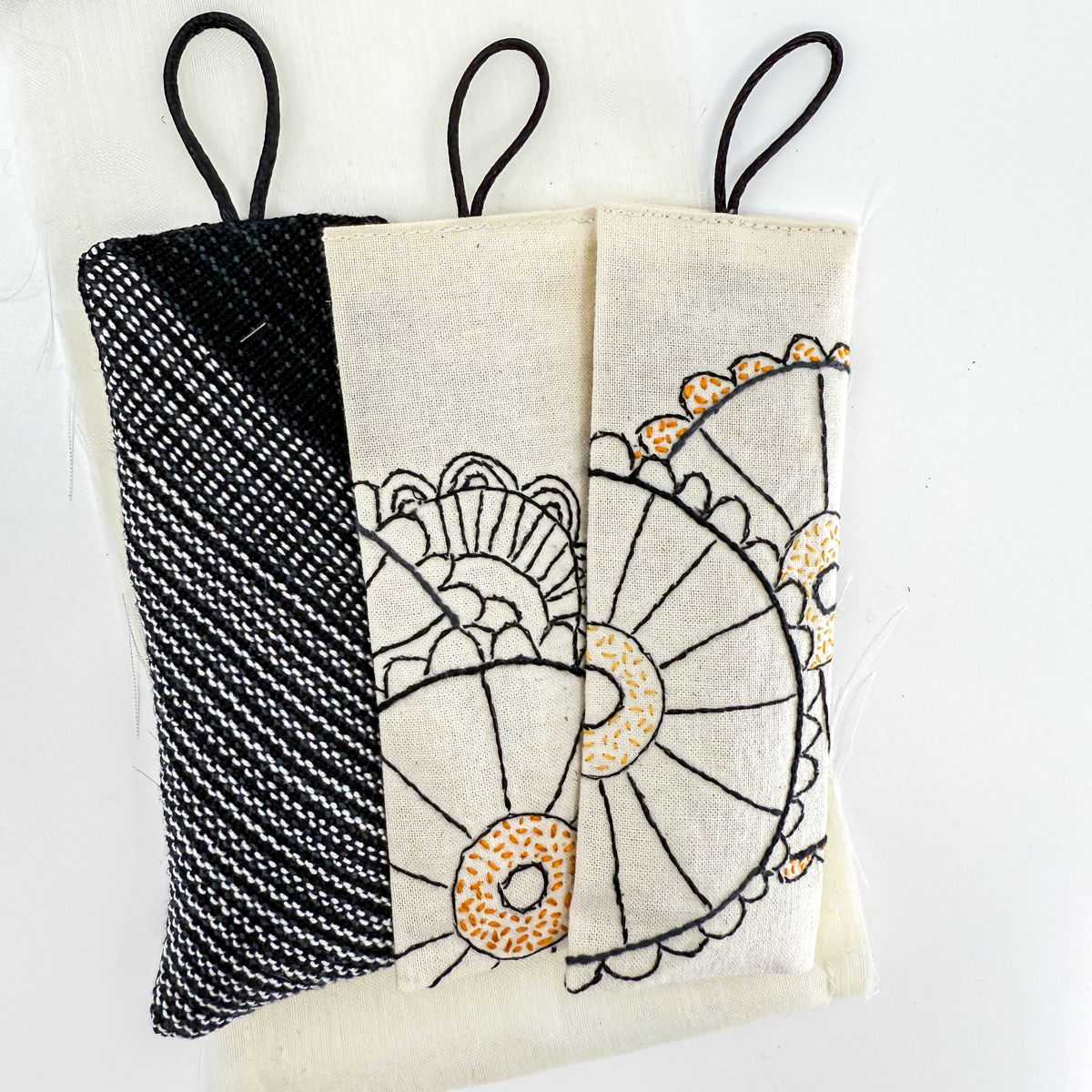 Sacchetti di lavanda da appendere, confezione di 3 esemplari. Stoffa tessuta a telaio e ricamata a mano in misto cotone ed altre fibre, fiori di lavanda Bio, confezione in organza sintetica, colore panna. Dimensione: ca. 13 x 5 cm (sacchetto) Fino a esaurimento scorte. I colori degli articoli possono variare in quanto sono dei prodotti unici e artigianali.