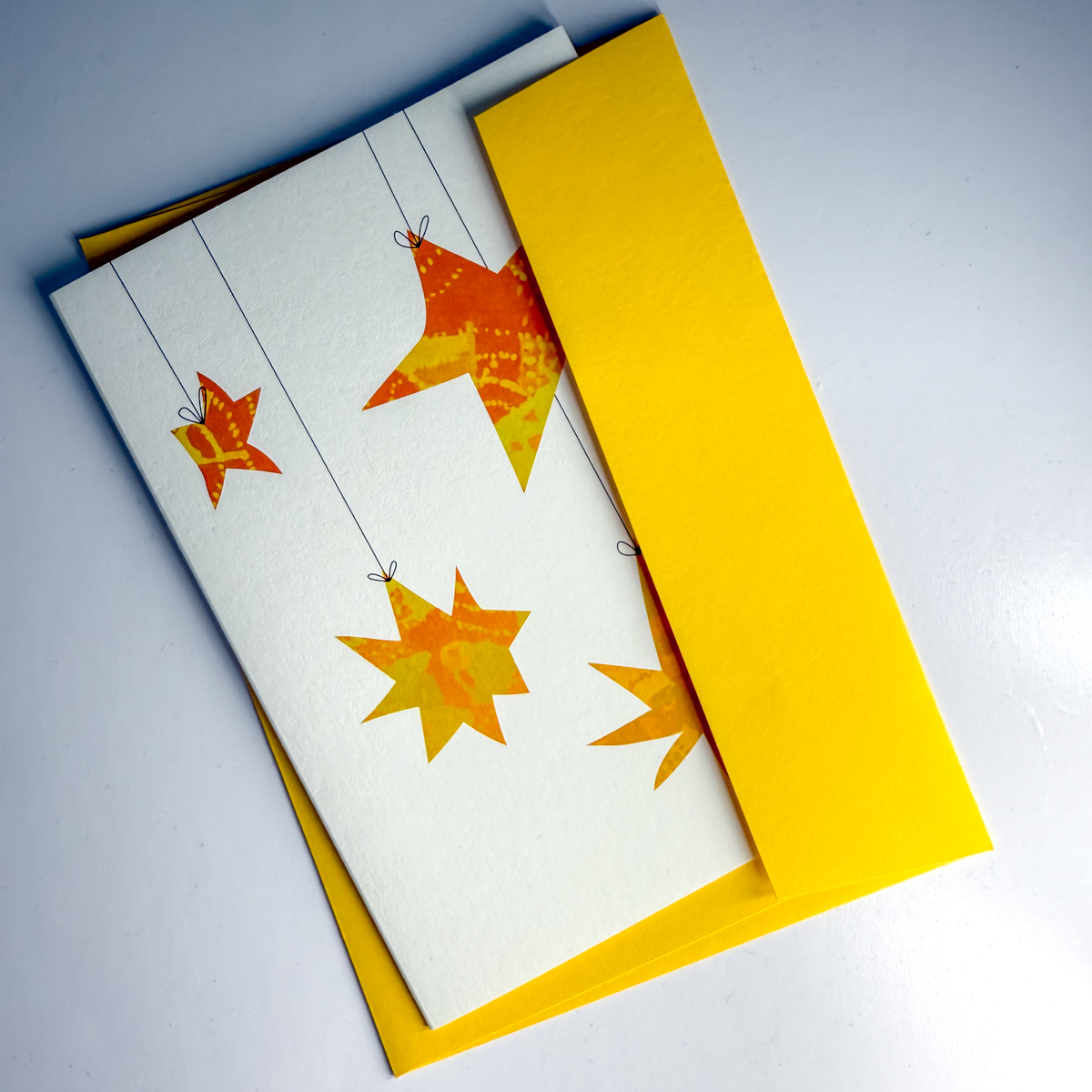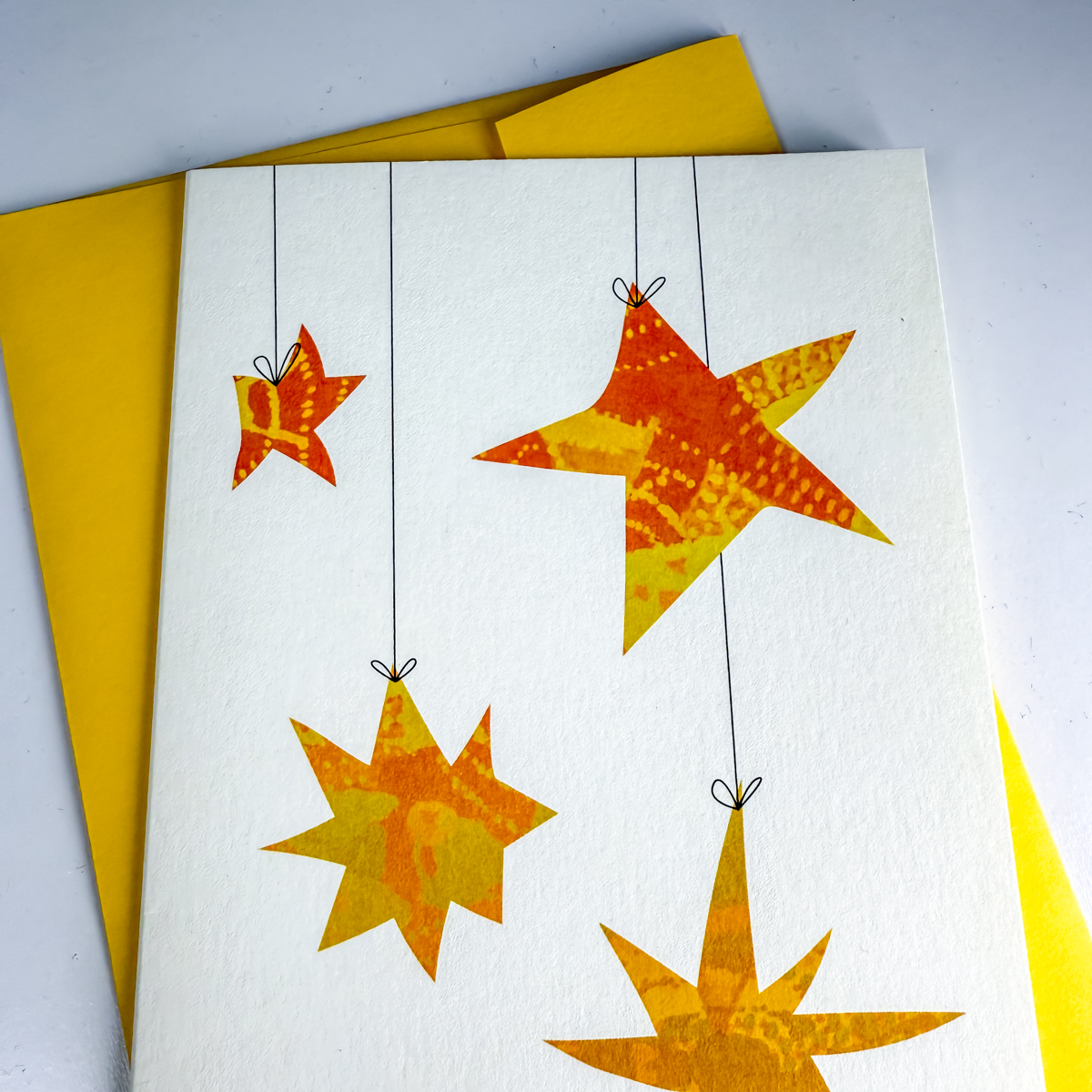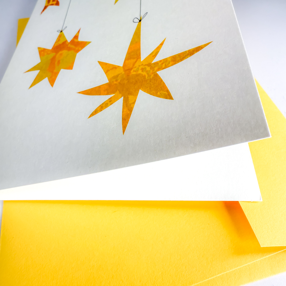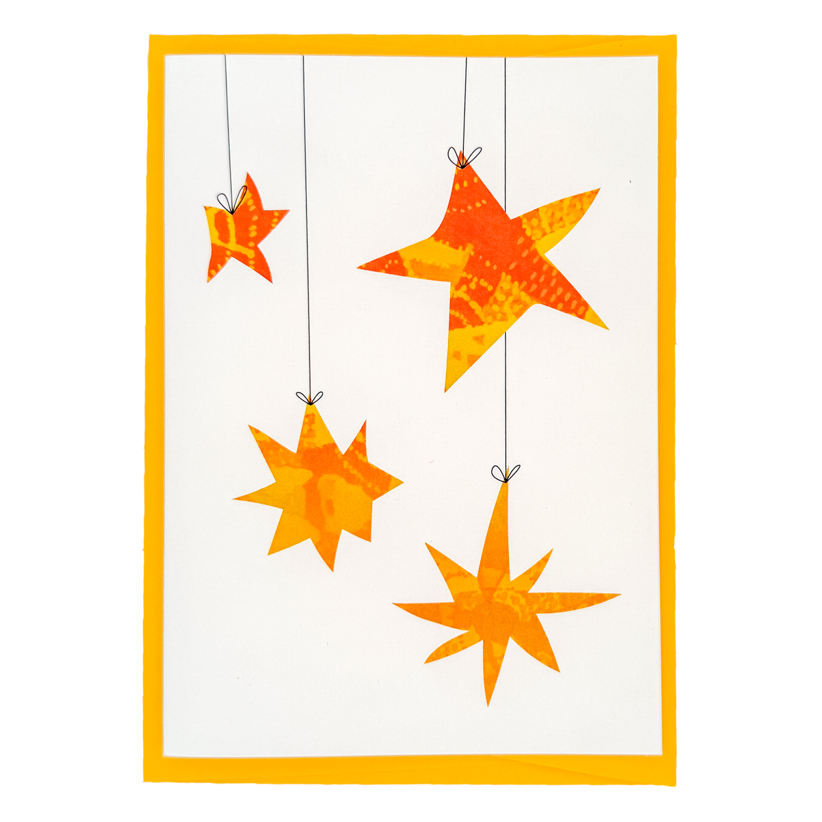 Stelle realizzate a partire da sfondi dipinti a mano e rielaborati in digitale. In formato A6 (10,5 × 14,85 cm, formato chiuso), stampato su cartoncino 240g/m².
