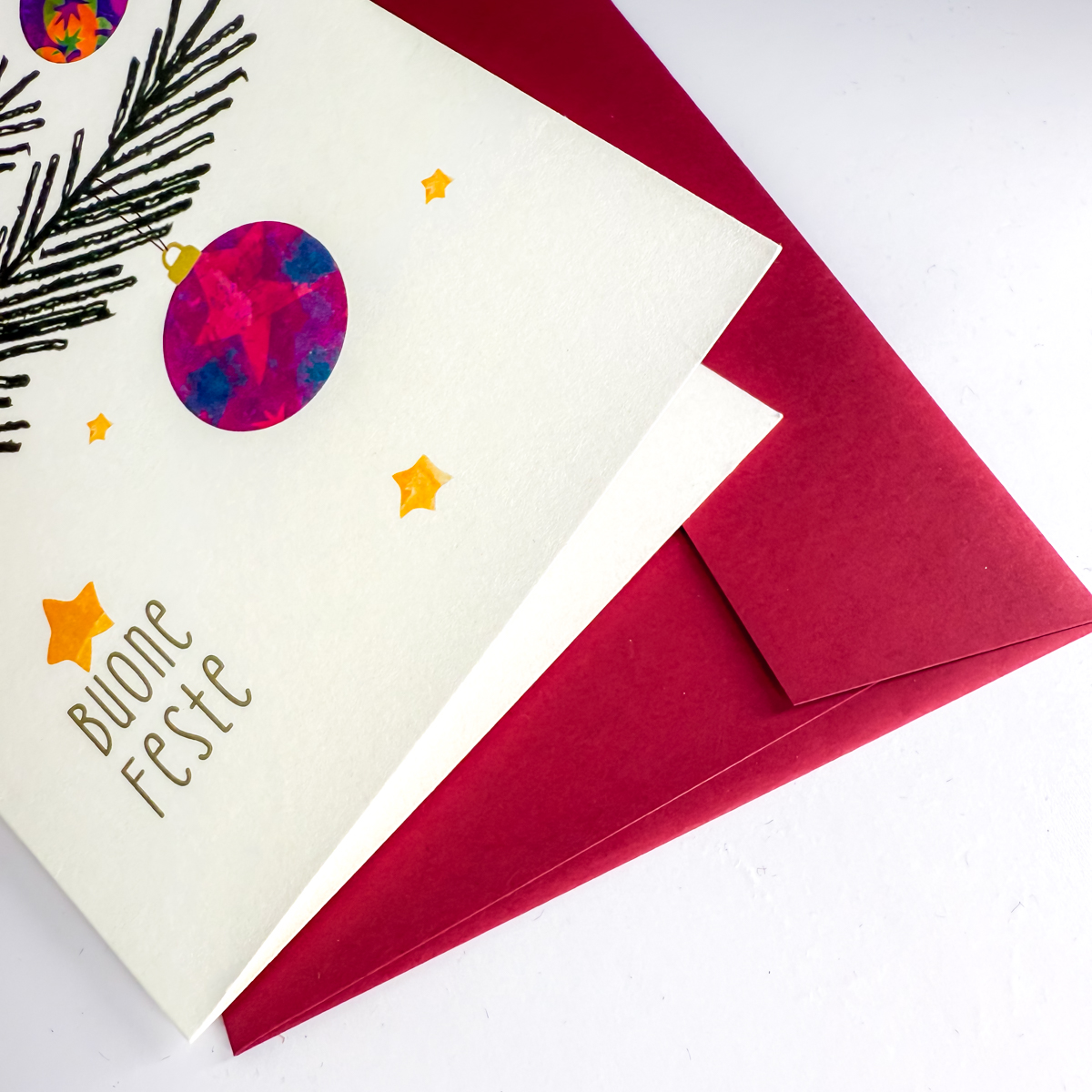 Inclusa nel prezzo, una busta bordeaux. È possibile personalizzare l’interno del biglietto e la scritta esterna. Le personalizzazioni vengono fatturate a parte.